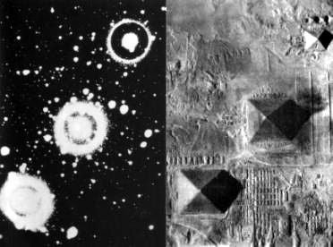 De piramiden van Gizeh ( Cheops, Chefren en Mykerinos) stonden voor de sterren van de gordel van orion. Door de piramiden met de sterren te verbinden onstond er een verbinding tussen de rustplaats op aarde en het hemelrijk bij de sterren. Waar de farao's dus eeuwig een '' god '' zouden blijven. Als een ster.